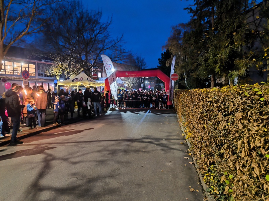 Die zweite Gruppe des Schülerlaufs 1 startete nun schon im Dunkeln, sodass die Fackeln, die dem Lauf seinen Namen geben, und die entweder auf der Laufstrecke am Boden positioniert waren oder von Zuschauer / -innen gehalten wurden, die Atmosphäre so besonders machten.