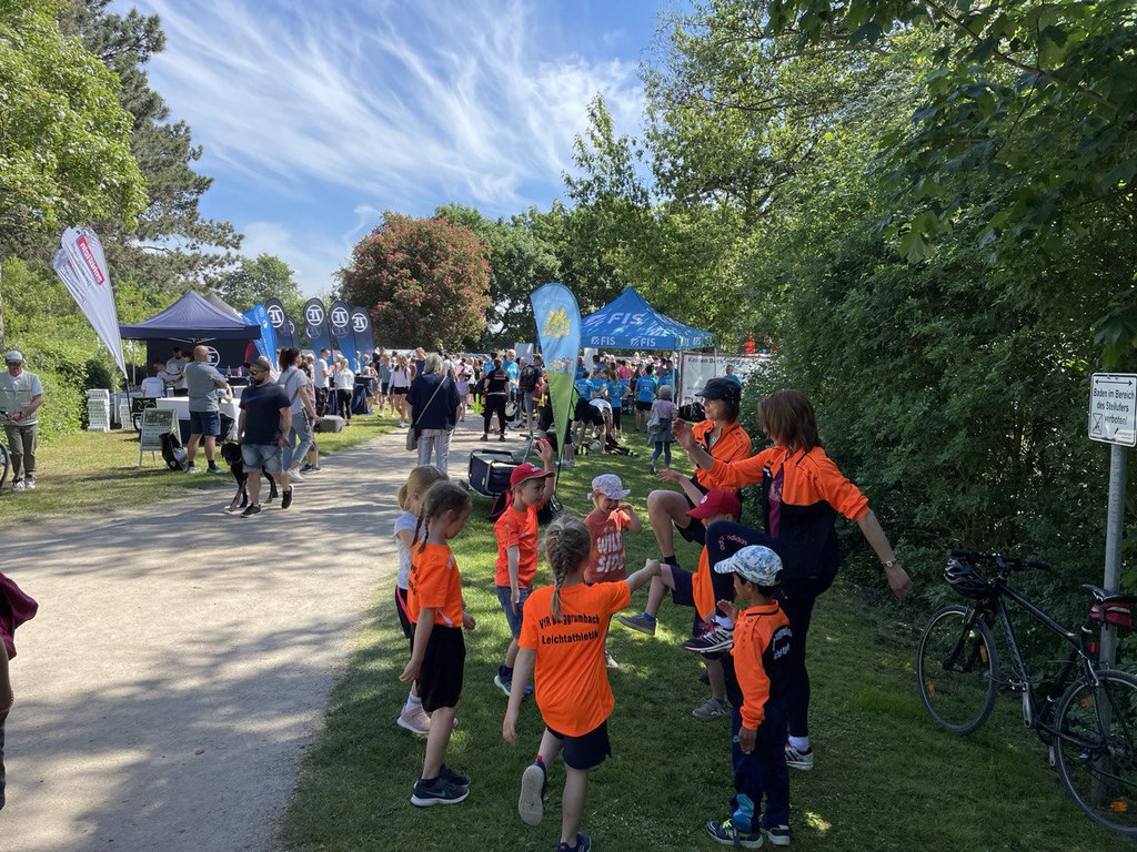 Am Bambinilauf über 500 Meter nahmen sieben Kinder unserer U6-Trainingsgruppe, drei Kinder aus unserer U8-Trainingsgruppe sowie ein Geschwisterkind teil. Für viele der kleinen Athleten war es der allererste Laufwettbewerb und entsprechend groß war die Aufregung. Doch alle Kids schafften die Strecke, teilweise völlig selbstständig, teilweise auch mit etwas Unterstützung der Eltern. Mit Stolz nahmen die Kids nach dem Lauf ihre wohlverdienten Goldmedaillen in Empfang und trugen diese wohl noch bis zum Schlafengehen um den Hals.