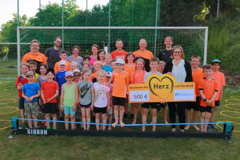 Die VfR-Leichtathletik hat von der Raiffeisenbank einen Scheck über 500€ erhalten.
