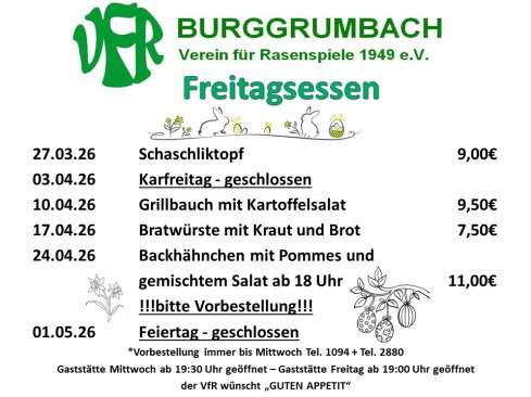 Speiseplan für Freitagsstammtisch